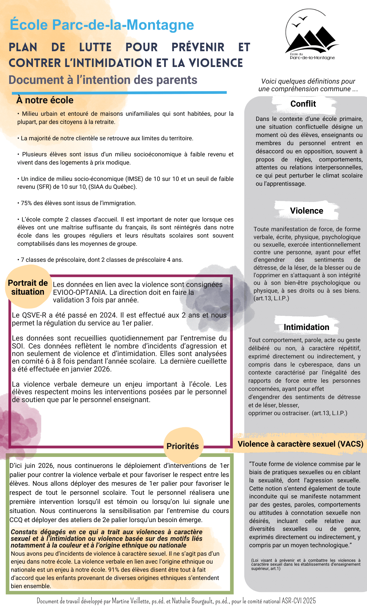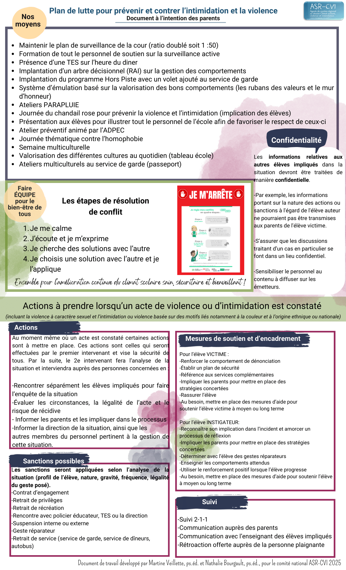 Voici notre plan de lutte contre la violence et l’intimidation.